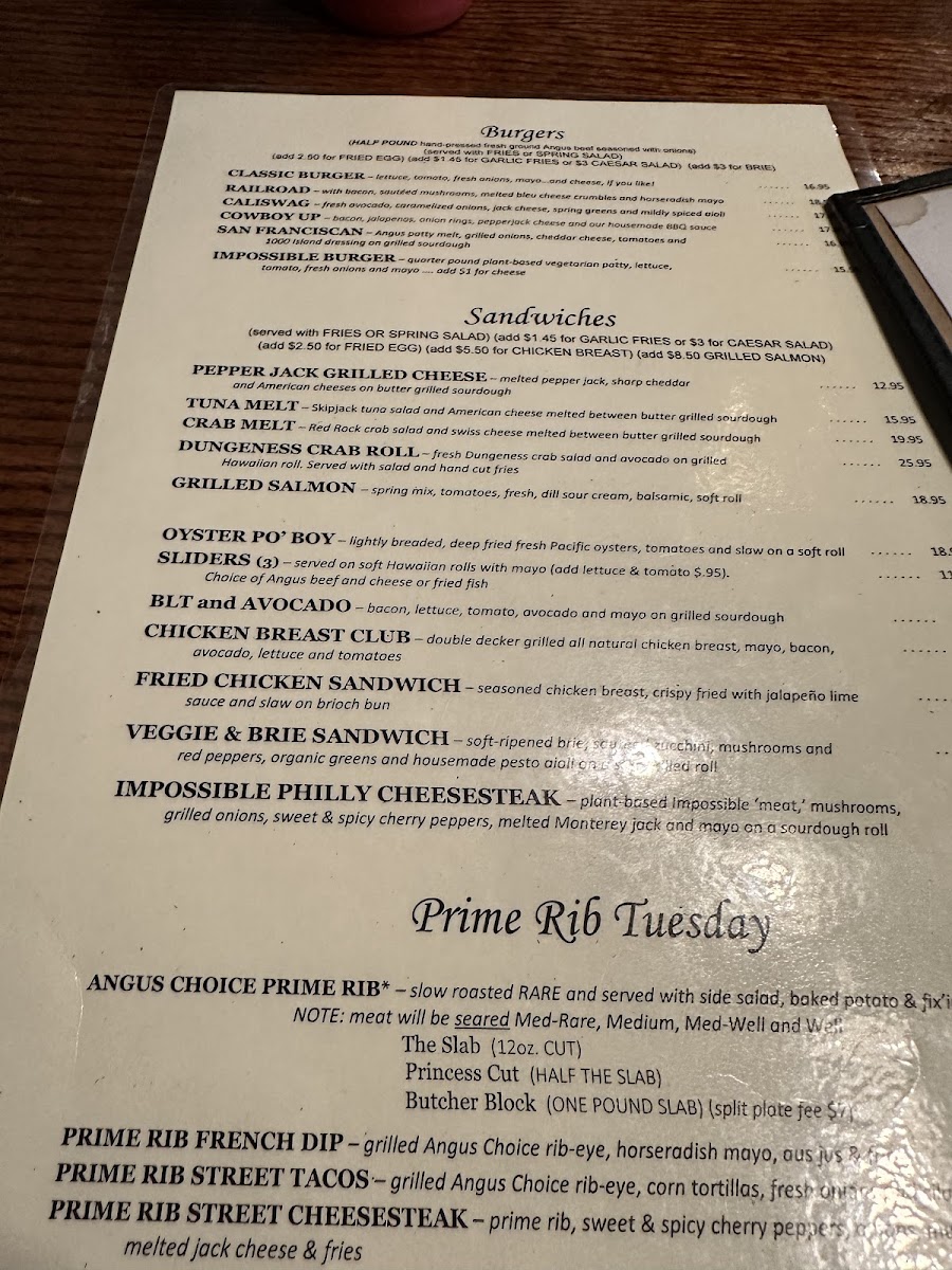 For the heartier appetites, the Crab Melt ($12.95) is a sumptuous indulgence, featuring succulent crab meat enveloped in melted cheese housed between perfectly toasted bread. Alternatively, the Deep Fried Softshell Crab Sandwich ($14.95) promises a mouthwatering flavor explosion that is impossible to resist. And don’t forget dessert! Treat yourself to their heavenly Blueberry Cheesecake ($5.95) or a luscious Tiramisu to cap off your dining experience on a sweet note.